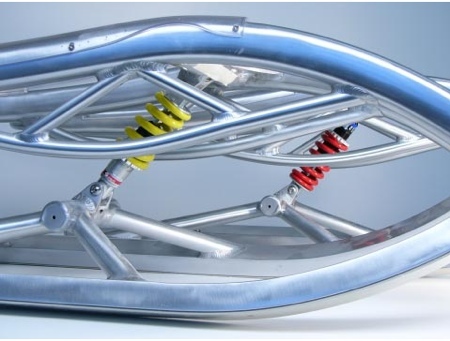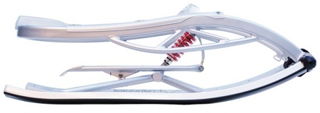 Il s’agit de LA luge pour ceux qui assument : entièrement en alu, amortisseurs, freins en alu, surface de glisse en polyethylene, siège transparent en et le tout pour un poid de 9,5kg.