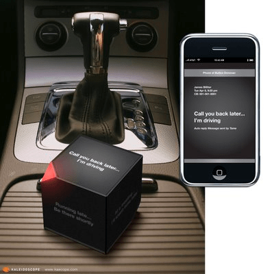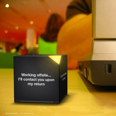Comme vous pouvez le voir sur les photo il s’agit d’un petit cube, chaque face sera programmable et affichera un message : en voiture/au téléphone/en train de faire des choses inavouables … Il suffira ainsi ? son propriétaire de le retourner sur la bonne face pour qu’automatiquement un signal « social » soit envoyé ? tous les supports. Par exemple, quand je vais faire la sieste, le petit cube twittera le message, changera mes statuts sur skype/gtalk, mettra mon GSM en mode silencieux…