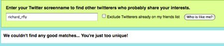 Avec Twits like me une étape est franchie, le site propose de vous aider ? trouver des amis via Twitter grâce encore une fois ? un algorithme magique.