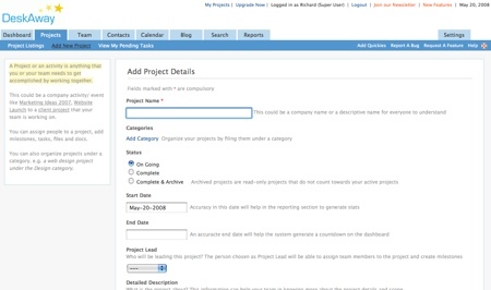 A note qu’en plus de Basecamp et ZohoProjets, il existe également d’autres alternatives, notamment ActiveCollab, ProjectPier et Collabtive. 😉 Sinon, Deskaway paraît vraiment bien construit, et déj? très fonctionnel.