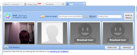 Jakatak : meebo fonctionne uniquement pour les IM. Guillaume : c’est sûr que le risque de voir le service se faire démonter par d’autres existe mais c’est toujours le cas. L’avantage de Orgoo est d’être indépendant des 3 gros donc de pouvoir centraliser leurs services. Essayer de récupérer Hotmail dans Gmail est complexe je crois. Pour la visio, c’est peut être dans les plans secrets du site mais j’avoue que pour l’instant rien n’est annoncé donc on en reparlera surement dans quelques temps. Je pense comme toi que ça va être dur par contre parce que la plupart des services de visio sont propriétaires et fermés. Ceci dit, il est bien foutu leur module et pourrait devenir une petite référence pour les visios ? 4 sans se prendre la tête, ça se lance en 1 clic, ça te donne une url que tu passes ? tes potes, et direct c’est parti. Maintenant ? voir ? l’usage, j’avoue que pour l’instant j’hésite encore.