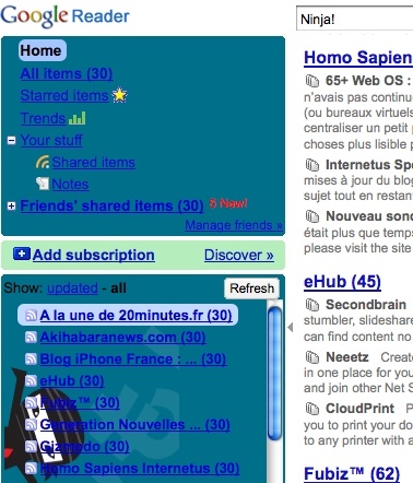 Un ninja dans Google reader [easter egg]