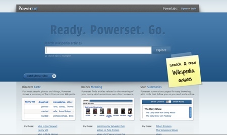 En lisant l’info du rachat, j’ai été faire un petit tour sur Powerset.com qui propose pour l’instant de faire des recherche dans Wikipedia et uniquement en anglais.