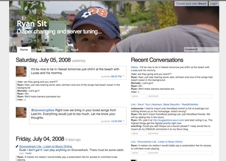 Le mot est ? nouveau laché : lifestream et Swurl surfe sur cette tendance qui a mon avis va s’imposer dans le grand public. L’idée du lifestream a été popularisé par friendfeed et de plus en plus de sites et de services tentent de prendre la main dans ce domaine.