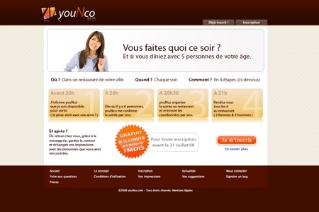 youNco est un site de rencontre d’un autre genre, l’idée est d’organiser des repas entre personnes pas forcement célibataire d’ailleurs mais surtout au dernier moment.