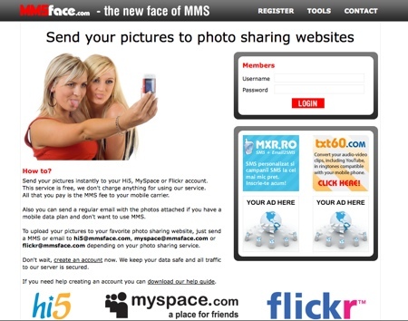 MMSface propose donc d’envoyer sur flickR, MySpace et Hi5 les photos depuis votre mobile via un MMS.
