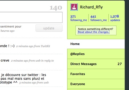 La liste des changement est dispo sur le blog et est assez longue. Dans les choses marquantes on peut noter le glissement des onglets vers la sidebar, une meilleure mise en avant des « scores » de following_me/followers_me. Le blog insiste sur le fait que les équipes de dev’ ont ajouté pas mal d’AJAX pour rendre le site plus rapide. Au rayon des nouveautés, la nouvelle interface de customisation de sa page est plus simple et accessible. Enfin il semblerait que les alertes par IM soit de retour.