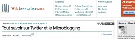 Il y a quelques jours Benoit Duverneuil poste un commentaire dessous un de mes billets sur Twitter en indiquant entre autre qu’il a rédigé un « modeste » billet sur la question du microblogging, je vais donc jeter un oeil et l? surprise, son billet est ultra complet, en terme de service, d’écosystème et d’usage.