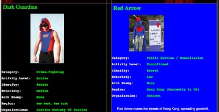 Dans un autre genre mais toujours en collants moulants, e site World SuperHero Registry est l’index des vrais super héros actifs aux USA, une belle brochette de vainqueur qui lutte contre le crime. Je vous laisse découvrir, le site et les MySpace des SuperHero IRL…