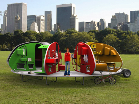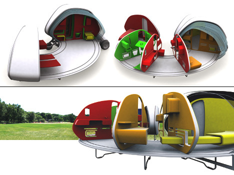 Voil? le genre d’idée que j’adore et que l’on trouve régulièrement sur Yanko, une caravane complètement dépliable avec un look du futur mi organique mi retro.