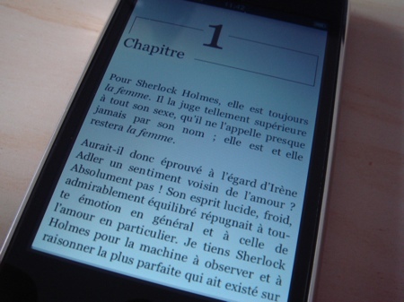La question est bien sûr de savoir si il est envisageable de lire un livre entier sur l’iPhone ou si l’encre électronique dont on parle beaucoup est incontournable. Je n’ai pas encore attaqué les aventures de Sherlock Holmes (domaine public) que j’ai installé sur ma machine donc je n’ai pas encore d’avis franc ? vous donner. Une chose est sûre c’est que la lecture sur ce type de format pourrait devenir dans quelques mois une source de revenu très importante, Amazon le leader américain du bien culturel a d »ailleurs vraiment envie que les choses sérieuses commencent, au del? du lancement du Kindle 2, la société a acheté la semaine dernière toute la suite Stanza pour une somme non dévoilée.