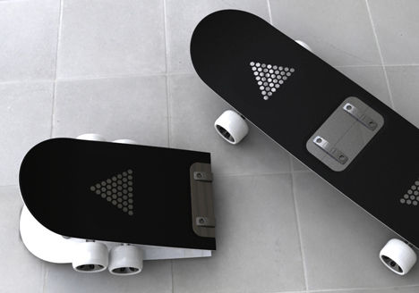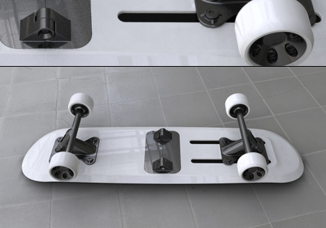 Le skate c’est très pratique pour se déplacer sans polluer et en faisant de l’exercice mais dans certains cas c’est encombrant. C’est de cette constatation qu’est parti Jin-Seok Hwang en imaginant une planche pliable.