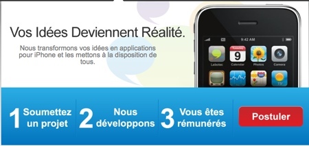 Labotec est une jeune société Franco-américaine qui a lancé son site web hier. Le principe sur lequel repose le site est simple : recueillir des idées d’applications pour iPhone et les développer, les promouvoir, les vendre et enfin partager les gains avec l’apporteur de l’idée.