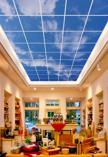 SkyFactory est une entreprise américaine qui vient de se lancer sur un créneau du futur, les plafonds-écrans. Le système est simple, mettre des écrans LCD Full HD et y diffuser du contenu en HD représentant le ciel, les nuages, les petits oiseaux… Bien sûr ils vendent aussi des vidéos ? passer sur les murs mais c’est quand même moins fun.