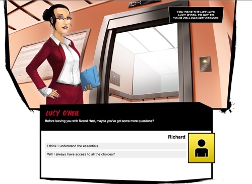 Le mécanisme repose sur la ballade du visiteur dans 5 environnements et c’est au sein de ces lieux que le visiteur, un étudiant doit rencontrer tous les personnages afin de récupérer des informations. Chaque dialogue est là pour recueillir des informations sur le visiteur, c’est un modèle classique des serious games basés sur les QCM. Tous les dialogues sont là pour essayer de tisser un profil du visiteur. Le but de se profil est de pouvoir proposer à la fin du jeu, des idées de carrières en fonction du tempérament et des qualités de la personne.