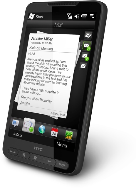 Le HTC HD2 est un des derniers mobiles du Taïwanais High Tech Computer Corporation disponible sur notre territoire. Le mobile est livrée avec une housse, kit main libre, le cable de connexion (micro USB), chargeur et CDs. Côté specs un écran capacitif de 480 X 800 Wide VGA, environ 500Mo de mémoire (+ slot SD), Processeur Snapdragon™ 1GHz, la 3G+, le Wi-Fi®: IEEE 802.11 b/g, APN 5mpx et si vous voulez plus de détail le site en français dédié au mobile.
