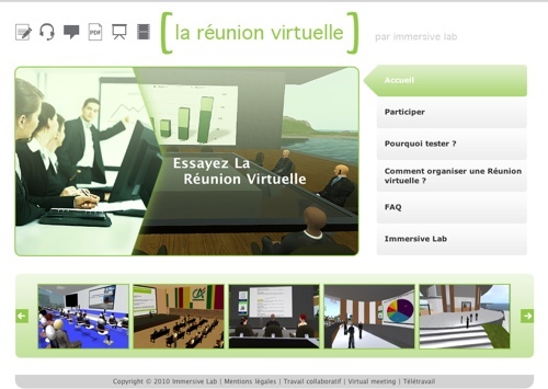 Nous avons donc décidé de lancer une opération baptisée « La réunion virtuelle » qui consiste à ouvrir une salle de réunion ou un amphithéâtre à ceux qui le désirent afin qu’ils puissent tester gratuitement par eux même et donc juger sur pièce de la pertinence des réunions au sein d’un environnement en 3D.