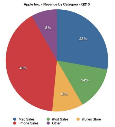 Un joli diagramme qui va surement faire 300 fois le tour du web aujourd’hui vient d’être publié par 9toMac, il représente la répartition des revenus d’Apple pour le dernier exercice fiscal de la marque pour 2010 (Q2-2010).