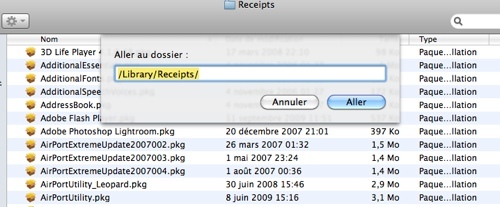 Ensuite on revient sur Finder et avec la même méthode on copie/colle : /Library/Receipts/ Le fichier a glissé à la poubelle est  » AppleMobileDeviceSupport.pkg «