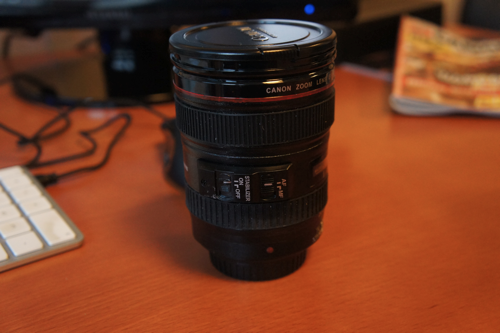 Alors, oui, c’est un superbe objectif Canon, sauf qu’en fait c’est un Mug, il fait un effet incroyable à delà de 1m de la cible 😀 mon plaisir l’envoyer par voie aerienne à un amateur de photo qui se décompose le temps de l’attraper au vol.