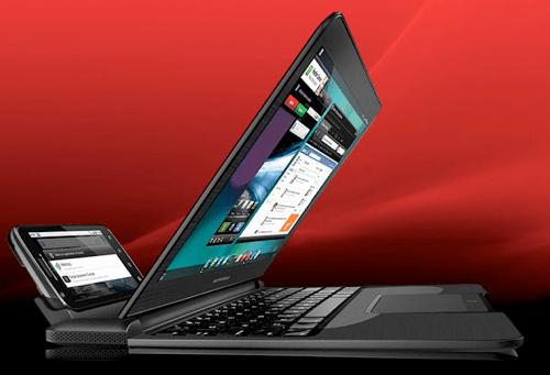 Motorala a donc profité de la puissance de son dernier né pour proposer au rayon des accessoires une « carcasse » de netbook sur lequel il est possible de connecter l’Atrix, mais ici pas de synchronisation, le netbook affiche directement le contenu du téléphone, ce dernier devient donc l’unité centrale de la machine.