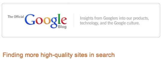 Mais pourquoi ? Parce que Google a décidé de changer son algorithme de résultat avec une cible claire en ligne : les fermes de contenus. Les fermes de contenus sont des dispositifs plus ou moins (mais surtout plus) de sites/blogs/trucs sur le web qui ont pour objectif de driver du traffic et du référencement sur des sites optimisés pour rapporter de l’argent.