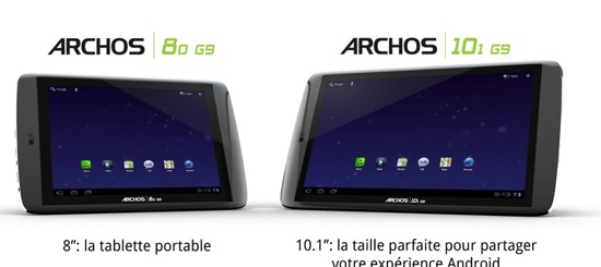 Dispo en septembre au prix de 249 euros l’Archos 80 G9 version flash (16Go), 299 euros l’Archos 101 G9 version flash (16Go) et 399 euros l’Archos 101 G9 version disque dur (250Go avec 4Go de cache).