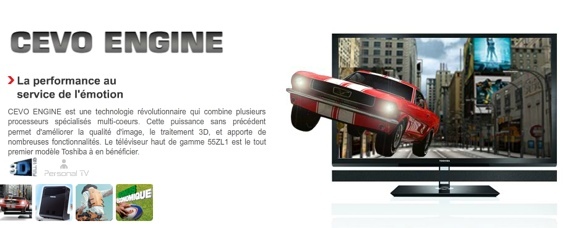 Côté spec », c’est un écran LED full HD 1080p (1920×1080), compatible 3D. A noter que c’est un des premiers modèles disposant du CEVO-ENGINE un dispositif utilisant des processeurs multi-coeurs pour traiter l’image. Cette techno est une déclinaison du CELL qui anime la PS3. La liste des features :