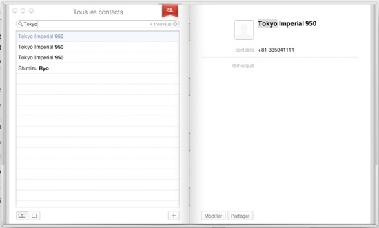 C’est sûr que c’est déjà mieux. Mais le truc que je trouve le plus chiant c’est l’ergonomie de l’interface de Carnet d’Adresses. Parce maintenant on peut pas voir les groupes, les contacts dans un groupe et la fiche sélectionné en même temps. Avant il y avait 3 colonnes. Maintenant il faut cliquer sur le marquer rouge pour basculer entre les groupes et la fiche. Et dans iCal il faudrait pouvoir enlever l’animation de la page qui tourne quand on change de mois. C’est sympa les premières fois, mais après ça fait lourd.