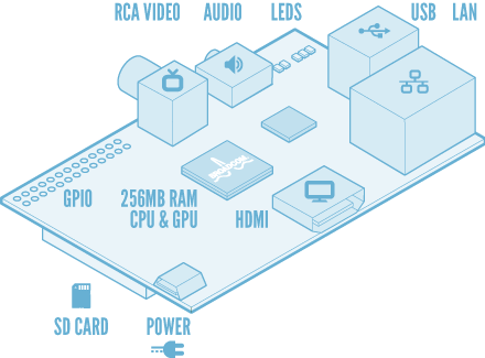 Modèle A Processeur: ARM1176JZF-S (ARMv6) 700MHz Broadcom 2763 RAM: 256 Mo SDRAM 2 Sorties video: Composite et HDMI 1 Sortie audio stéréo Jack 3,5 mm (sortie son 5.1 sur la prise HDMI) 1 Port USB 2.0 Unité de lecture-écriture de carte mémoire: SD / MMC / SDIO Prise pour alimentation micro-USB (consommation: 400mA + périphériques) API logicielle video: OpenGL : version embarquée OpenGL ES 2.0 Décodage video: 1080p30 H.264 high-profile