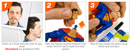 Du coup, je vous propose aujourd’hui de découvrir un service que je ne testerai pas mais qui est plutôt amusant, puis qu’il s’agit d’une boite anglaise qui propose de passer votre tête dans une imprimante 3D et de la coller sur un super héros.