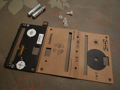 En fait le KNÄPPA est en carton, permet de faire 40 photos en basse définition et de les décharger via un slot USB intégré.
