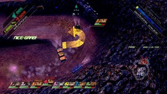 Au delà de la vue qui devrait d’après ce billet offrir un bon compromis entre fun et sensation de conduite, le jeu propose aussi des items « à la Mario Kart » pour mettre des batons dans les roues de ses adversaires. Il y aura aussi un grapin (ouais comme Batman) pour prendre des virages de dingues. Enfin en passant il y aura des modes offline et online en mode « course seulement » ce qui me semble être une très bonne idée.
