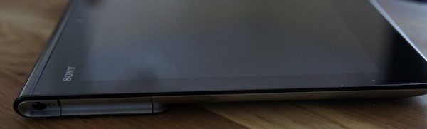 Si le contenu de la boite est simple, la tablette et son chargeur/cable USB au déballage la Xperia m’a tapé dans l’oeil. Certes c’est un rectangle noir avec un petit Sony en haut à gauche mais les designers du Japonais ont réussi à lui donner une originalité. Ils ont repris l’ancien design mais l’on rendu plus subtil. Une fois en main, on apprécie le changement de matériaux par rapport à l’ancienne version, ici pas de plastique mais de l’alu, franchement c’est a priori pas grand chose mais ça donne au produit un aspect plus soigné.