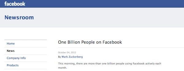 Voilà voilà, le 14/09/2012, le réseau social dirigé par Marc Z a passé la barre du milliard de comptes actifs…