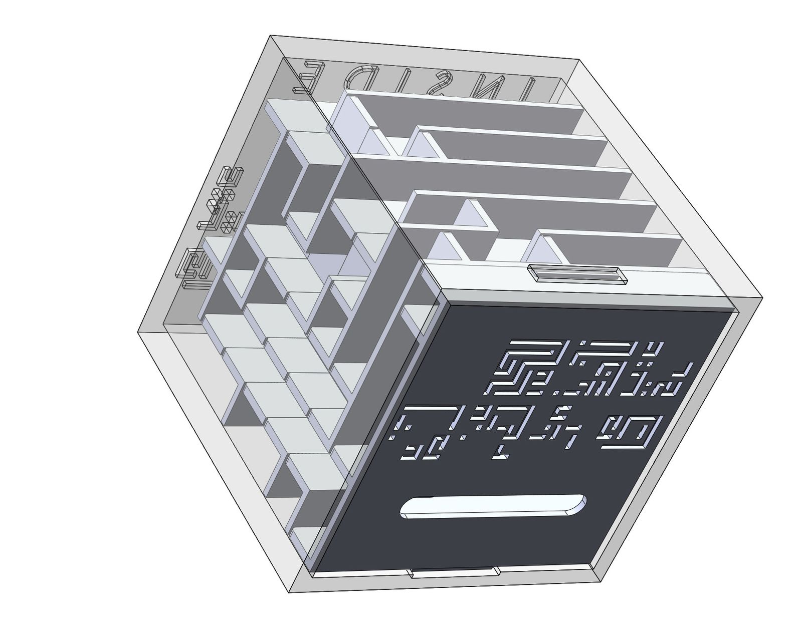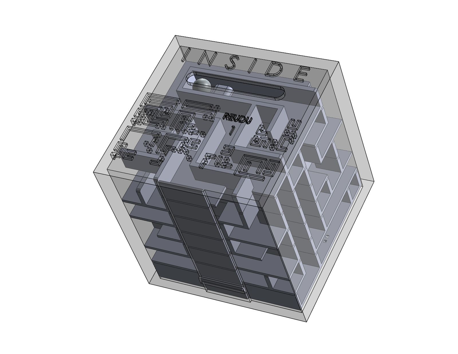I N S I D E ³ est un casse tête dans lequel il faut "vous menez la bille au sein des ténèbres, en aveugle. Votre seul guide est le plan gravé en surface. Libérez la bille, regardez la partir au cœur du cube, guidez la jusqu’à la lumière."