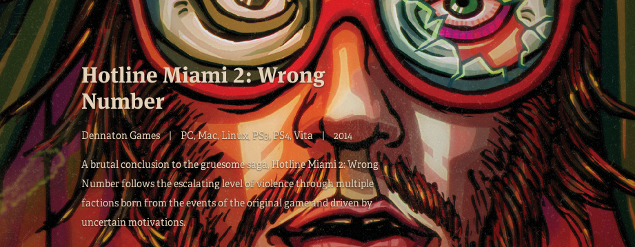 Hotline Miami est mon jeu préféré de 2012 sur Pc et je l'ai adoré en 2013 sur ma PSVita. La suite, Hotline Miami 2 sera le dernier épisode de la série et pour garantir des heures de jeu infinies, les petits gars de Dennation (qui seront dans Super Game Jam) vont proposer un éditeur de niveaux.