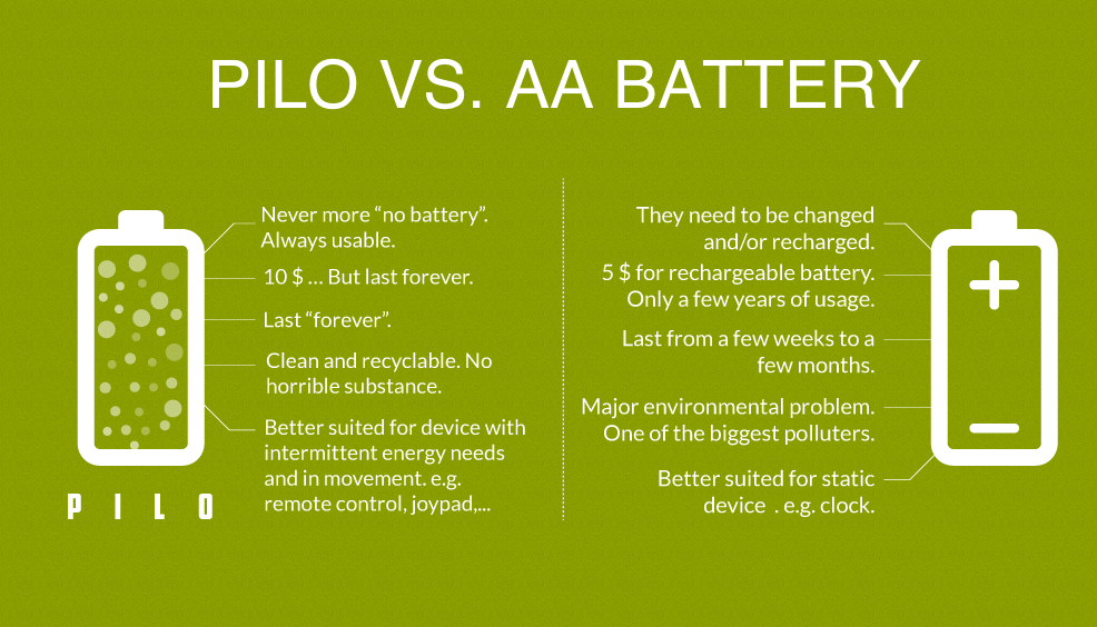 C'est de ce point de départ simple que sont partis les créateurs de Pilo avec une idée simple sur le papier : est il possible d'avoir une pile que l'on changerait jamais.