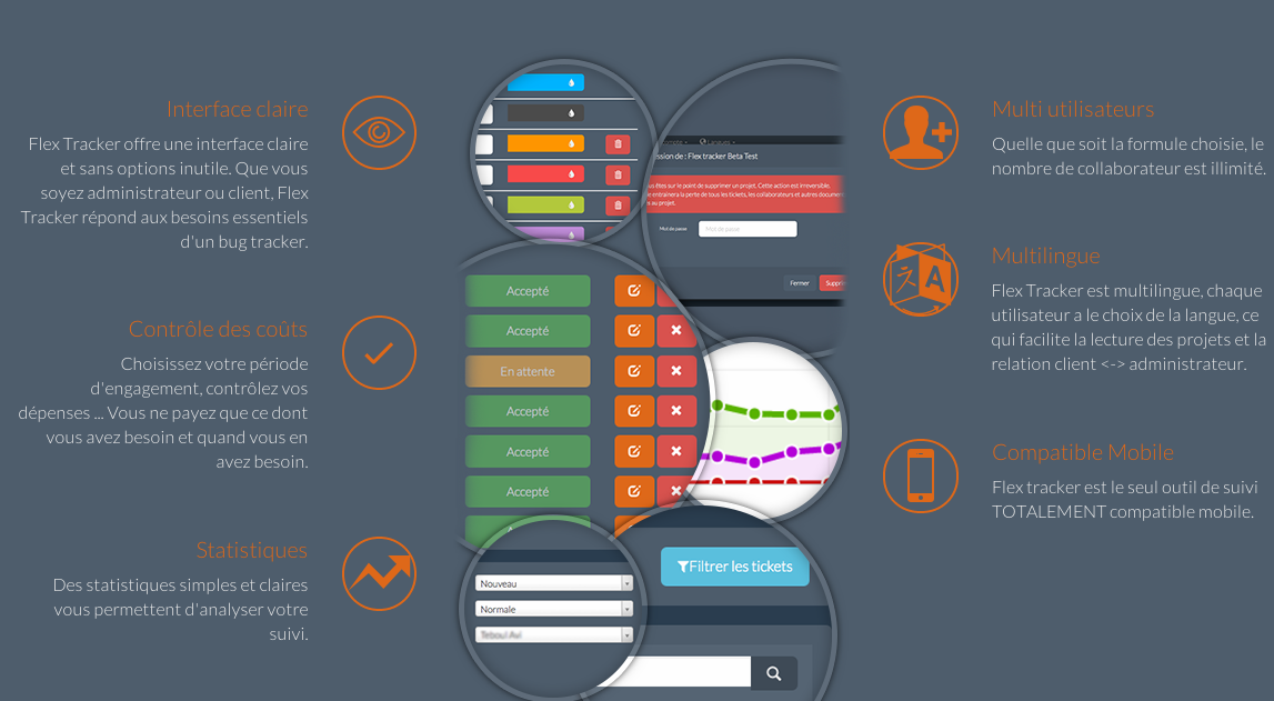 Flex-Tracker couvre tous les besoins d'un bug trackers, ouverture de projets, gestion des tickets, gestion des états, des utilisateurs mais reste simple et vraiment très ergonomique.
