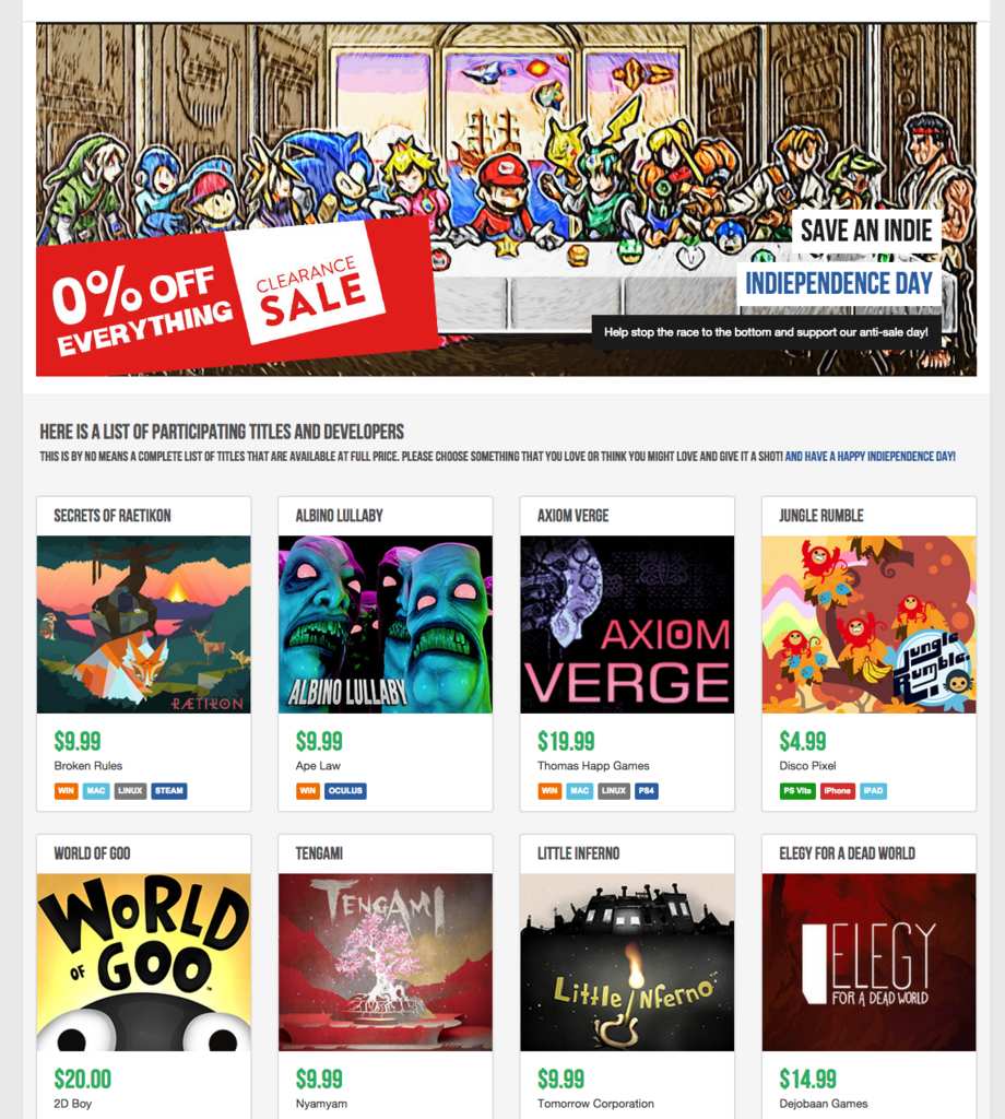 iindiependenceday est un site qui propose de remettre de l'ordre en proposant 0% de réduction sur tous les jeux. Jamais.