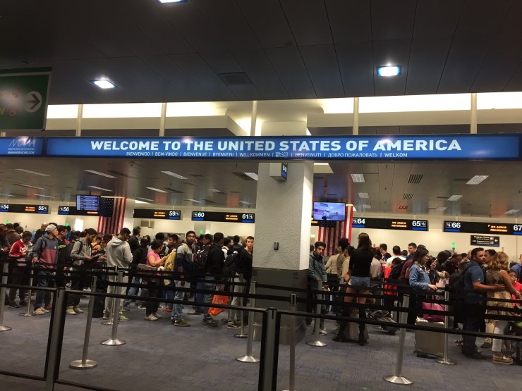 Première bonne surprise, le passage de la douane à Miami, tout le monde m’avait mis la pression sur ce truc : « t’es cool mais pas trop, pas de blagues, tu peux sourire mais pas trop… » au final c’était comme passer la douane en France, la prise de mes 10 empreintes digitales, de 2 photos et d’un scanner en plus…
