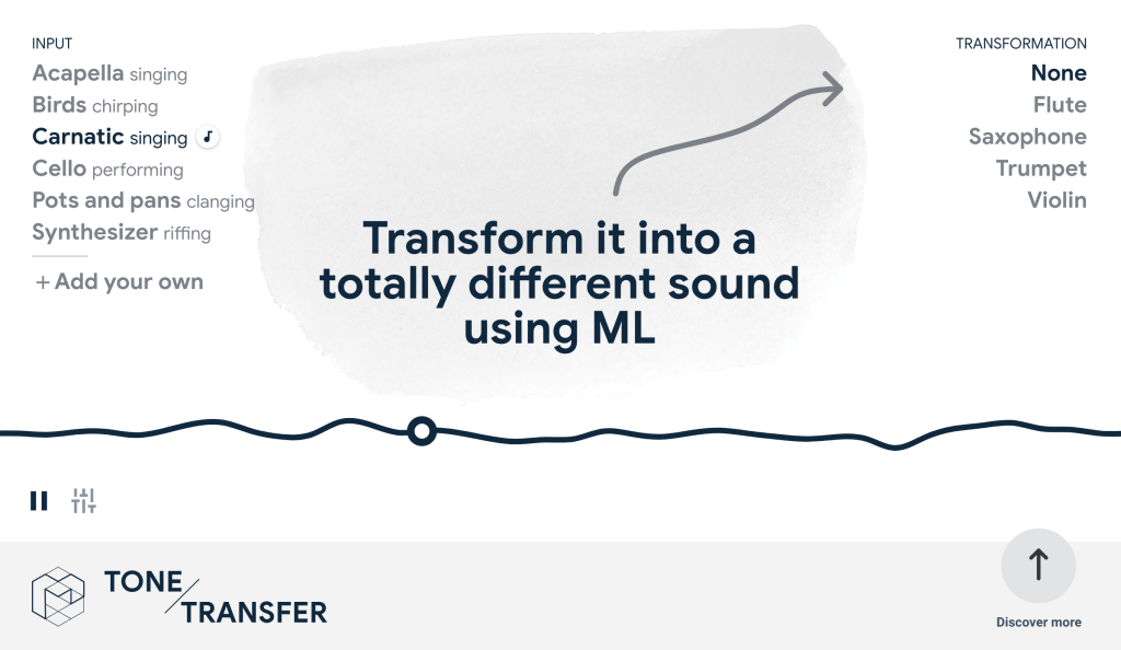 Magenta est un programme de recherche open source qui vise à expérimenter et à créer des liens entre Art et l’intelligence artificielle. Avec le soutien d’expert en technologies comme Google, le projet a déjà donné lieu à des premiers résultats mais Tone Transfer est probablement le plus abouti aujourd’hui.