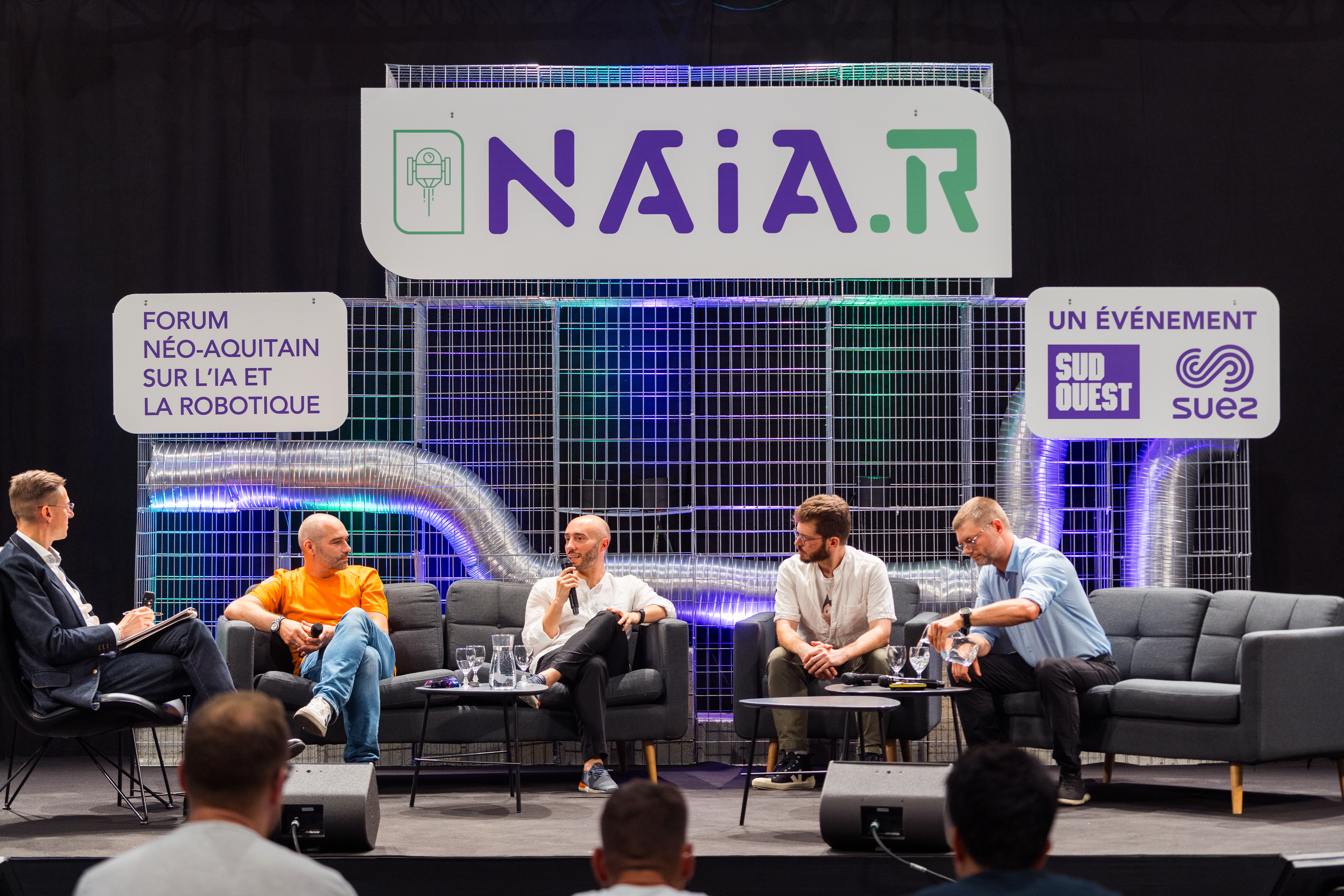Table ronde « Design et métiers de la création, l’évolution par la robotique et l’IA » avec Clément Borja (Ubisoft) / Pierre Durand-siboulet (Ubisoft) / Angelo Chiacchio (NoDesign) animé par Olivier Dancot lors de la Robocup 2023